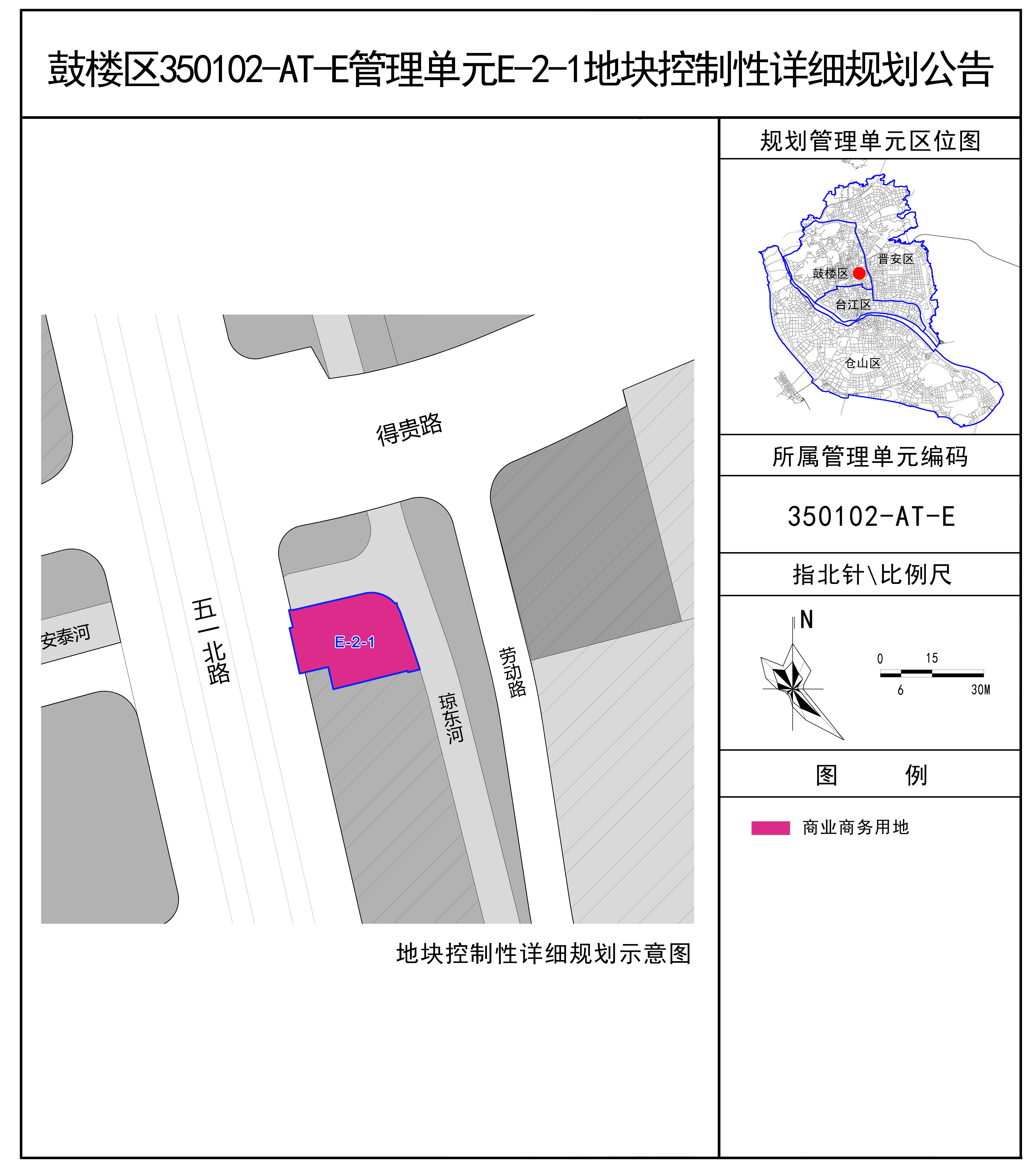 关于鼓楼区350102-AT-E管理单元E-2-1地块控制性详细规划的公告