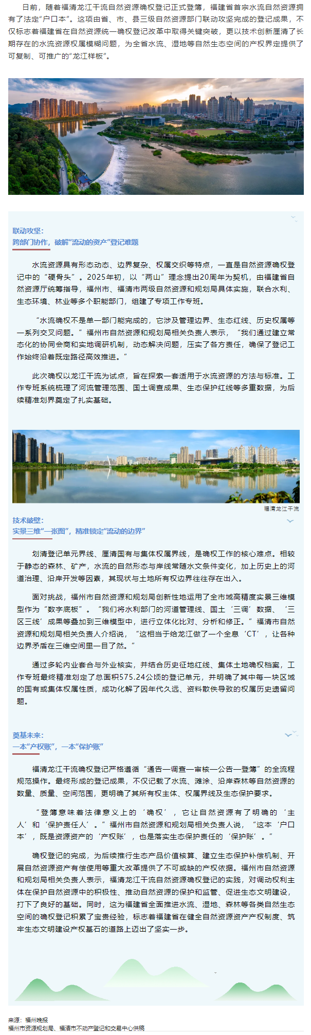 全省首宗水流自然资源确权登记落地——福清龙江干流获自然资源“户口本”